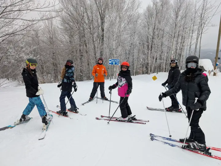 Morin Heights has multiple chairlifts. The Soleil chair is the easiest, especially for smaller students. There is a green run off of each chair, with the exception of the Kicking Horse chair. If the Kicking Horse chair is open, you need permission from a supervisor to go to that section as the terrain is more challenging. We will go over the terrain and show you around the mountain during the morning clinic.