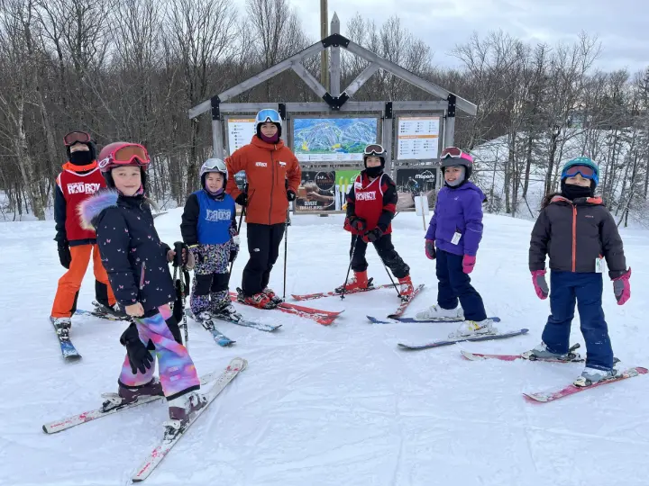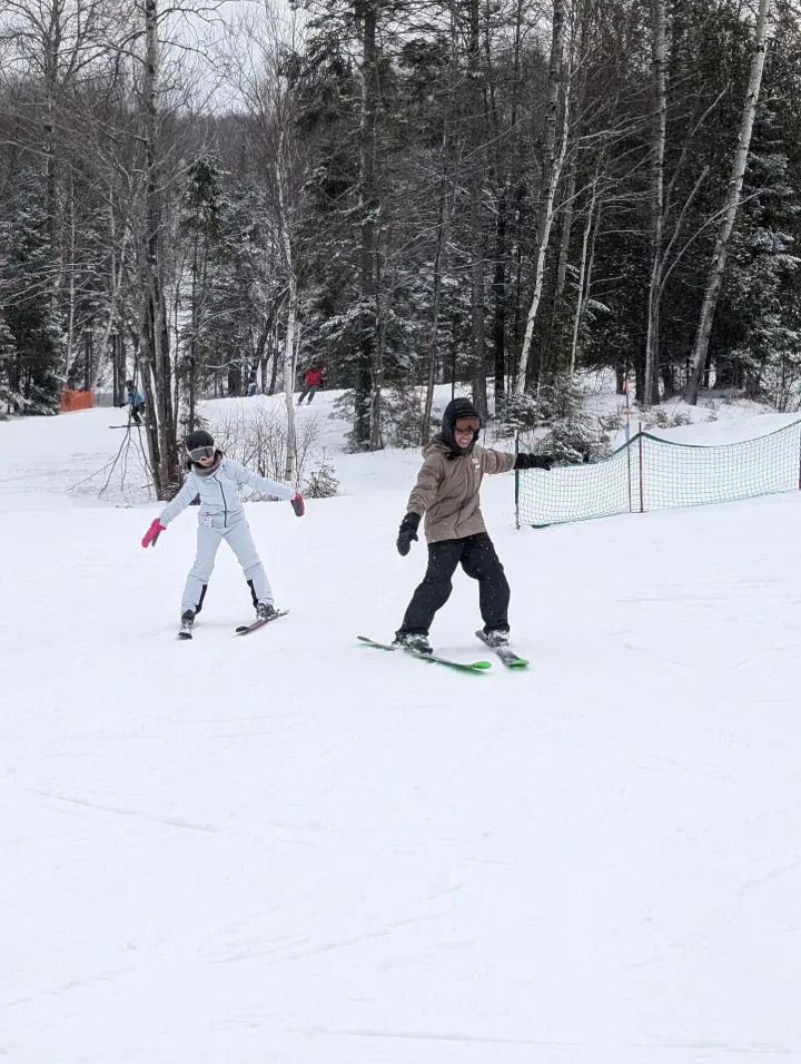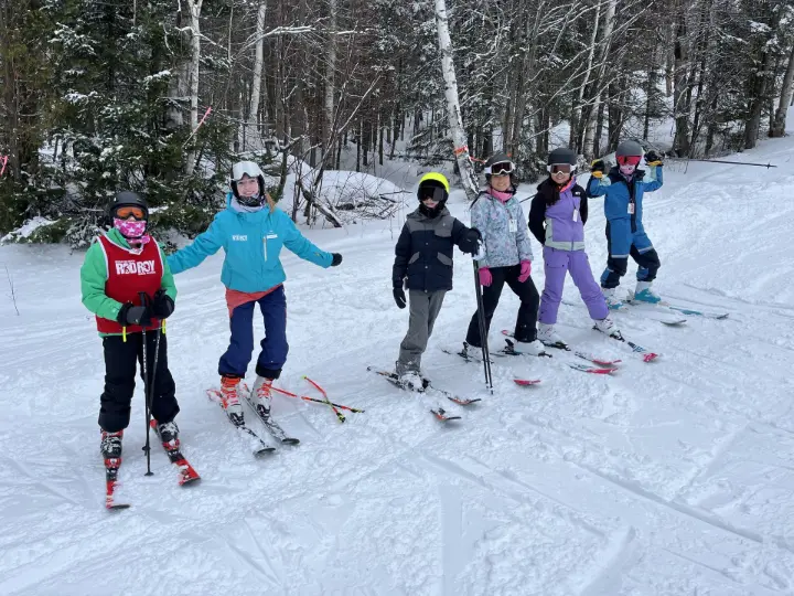 Morin Heights has multiple chairlifts. The Soleil chair is the easiest, especially for smaller students. There is a green run off of each chair, with the exception of the Kicking Horse chair. If the Kicking Horse chair is open, you need permission from a supervisor to go to that section as the terrain is significantly more challenging. We will go over the terrain and show you around the mountain during the morning clinic.